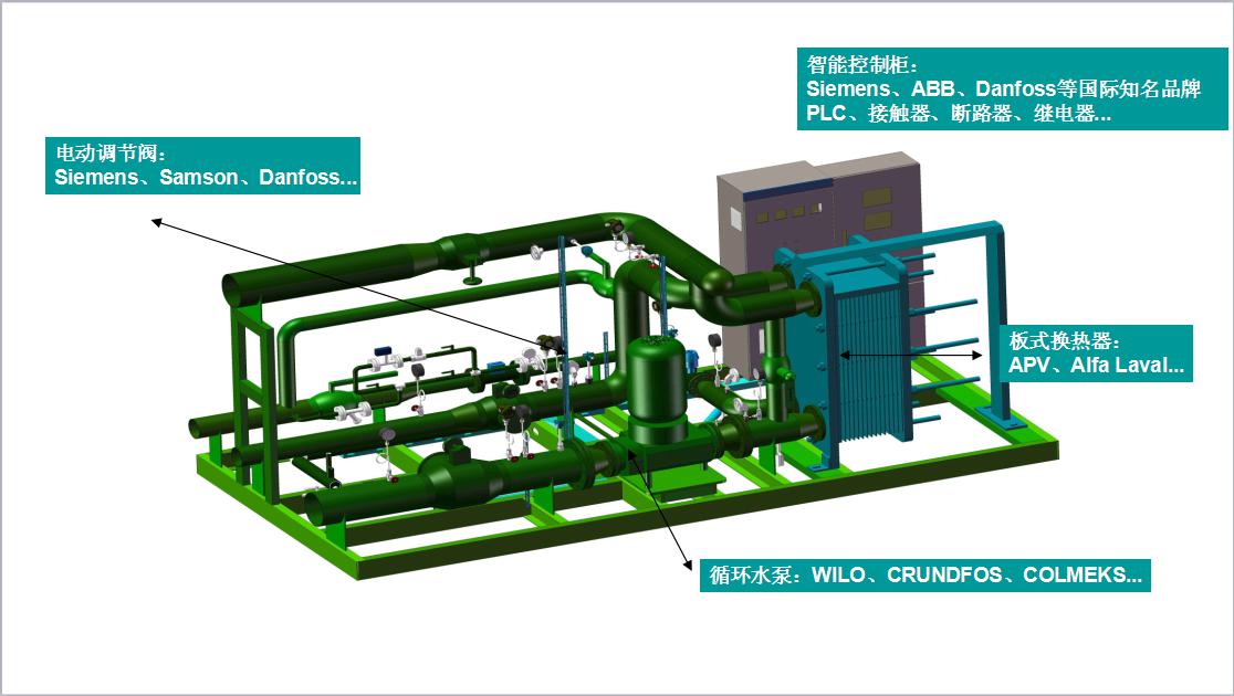 智能換熱機(jī)組是集成了板式換熱器、循環(huán)泵、補(bǔ)水泵、一補(bǔ)二系統(tǒng)、傳感器、儀表、電動調(diào)節(jié)閥及電氣控制系統(tǒng)等于一體的智能化設(shè)備。產(chǎn)品設(shè)計(jì)和裝配之前都進(jìn)行了科學(xué)計(jì)算和優(yōu)化設(shè)計(jì),結(jié)構(gòu)布局合理,硬件配置先進(jìn)精良,控制系統(tǒng)先進(jìn),智能化管理,操作簡單方便。